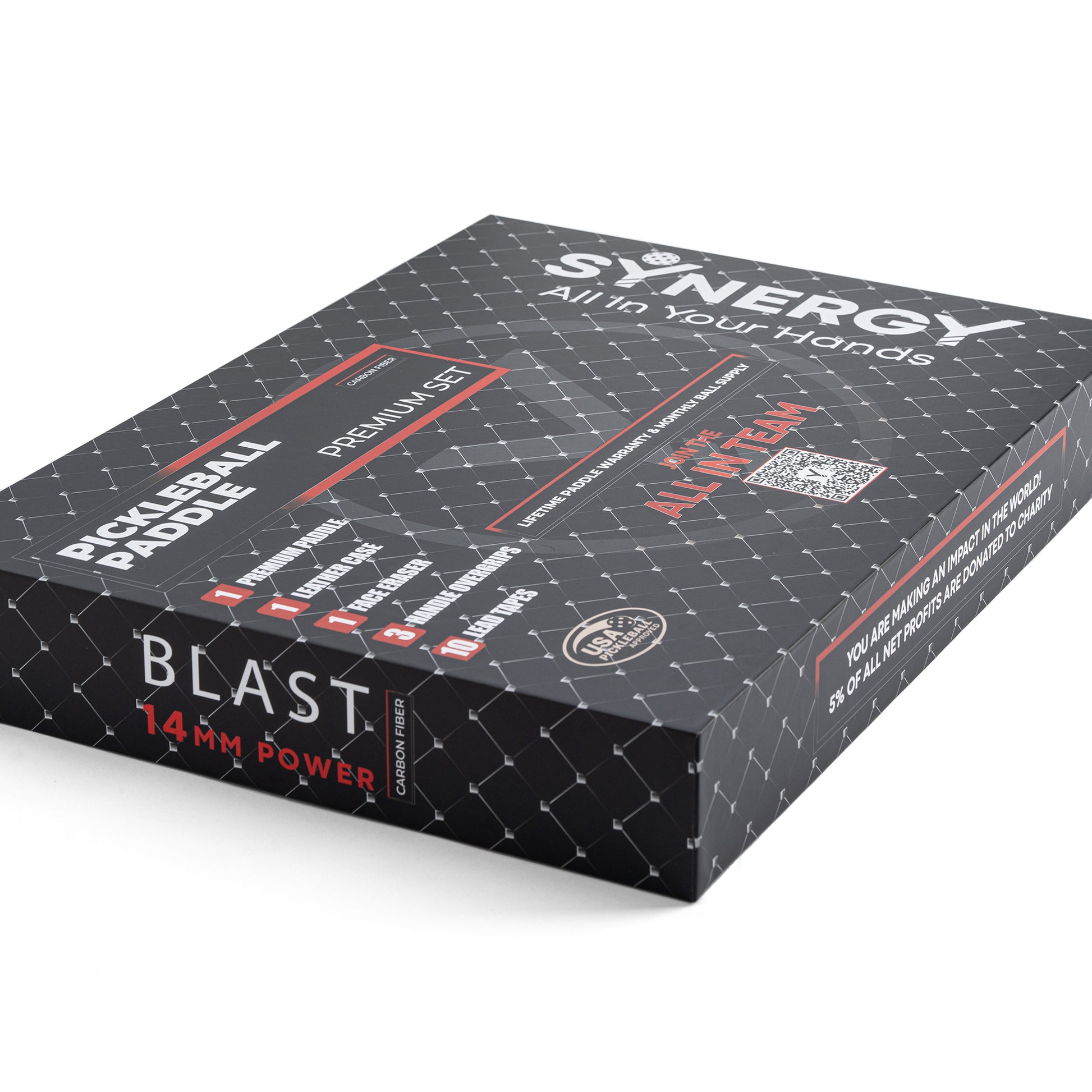 Unleash your power on the pickleball court with the Synergy Pickleball BLAST 14mm Power Paddle Premium Set. Designed for players who demand explosive power and precision, this premium set includes everything you need to dominate the game. The BLAST paddle features a 14mm Japanese Toray carbon fiber construction, providing an optimal balance of power and control, perfect for aggressive playstyles. This set is complete with essential accessories to keep you at the top of your game.